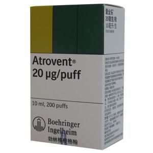 | 不良反应: | 在临床试验中最常见的非呼吸道的不良事件是头痛、恶心和口干。 由于爱全乐(Atrovent)全身吸收很少,其抗胆碱能副作用如心率增加和心悸、眼部调节障碍、胃肠道蠕动紊乱、尿潴留是很少见的,并且是可逆性的,但对已有尿道梗阻的患者来讲可能增加其尿潴留的危险性。 | ||||