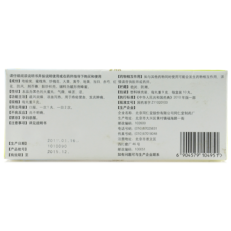 北京同仁堂地榆槐角丸