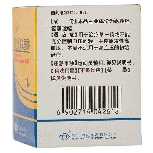金缬克缬沙坦氢氯噻嗪片14片