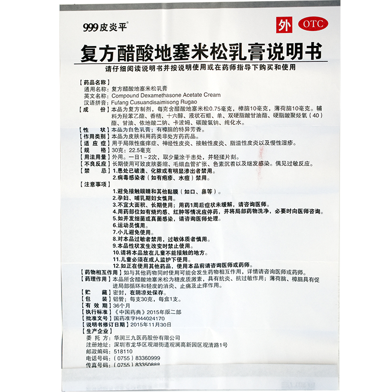 999皮炎平 复方醋酸地塞米松乳膏30g
