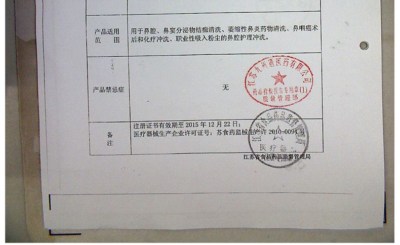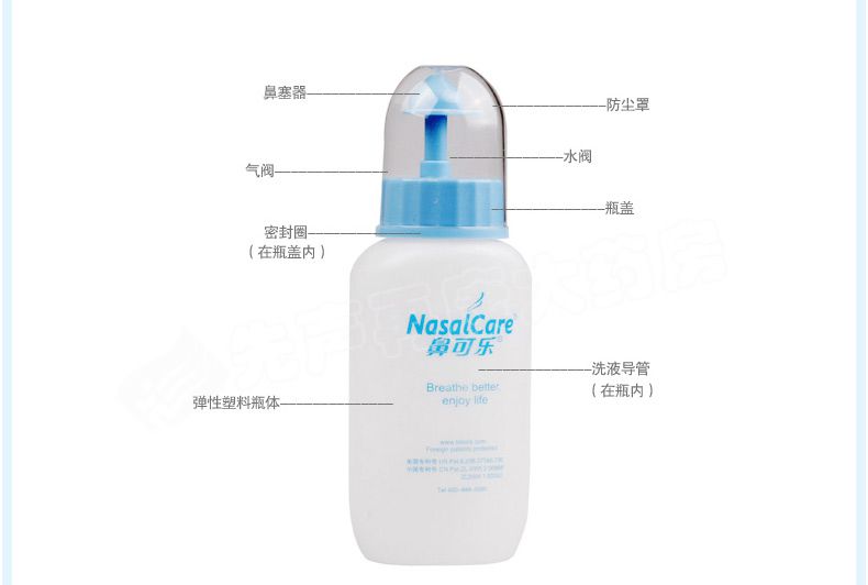 请仔细阅读说明书或在医务人员的指导下购买和使用。 【产品名称】 鼻可乐鼻腔清洗器 【规 格】 240ml+3.5g*10袋 (器+洗鼻剂10袋)【产品特点】 1.双正压反回流专利技术 2.不回流,不呛水 3.全面清洗鼻腔鼻窦 4.发明专利配方洗鼻剂 5.简单、安全、轻松、舒适 【适用范围】 1.用于鼻腔、鼻腔分泌物结痂清洗 2.萎缩性鼻炎药物清洗 3.鼻咽(癌)术后和化疗冲洗 4.清洗鼻部粘膜,避免因粘液在鼻腔的阻塞而导致感染,保护鼻腔粘膜 5.职业性吸入粉尘的鼻腔保健冲洗 【组 成】 1个洗鼻器 、10袋洗鼻剂 【使用方法】 1.加洁净的温水 2.加入洗鼻剂,水平移动摇匀 3.洗鼻 【批准文号】苏食药监械(准)字2011第2641167号 【生产厂家】 江苏泰德医药有限公司 |